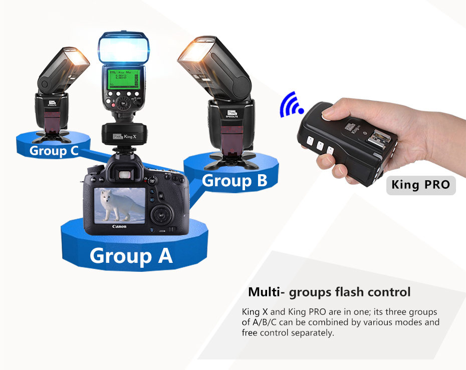 King X For Canon is a universal Receiver for a series of Pixel wireless TTL trigger products. Users buy a Canon King X can be used as a Canon Receiver for King pro. The product can be bought singly whose performance is the same as the Receiver of King pro.
