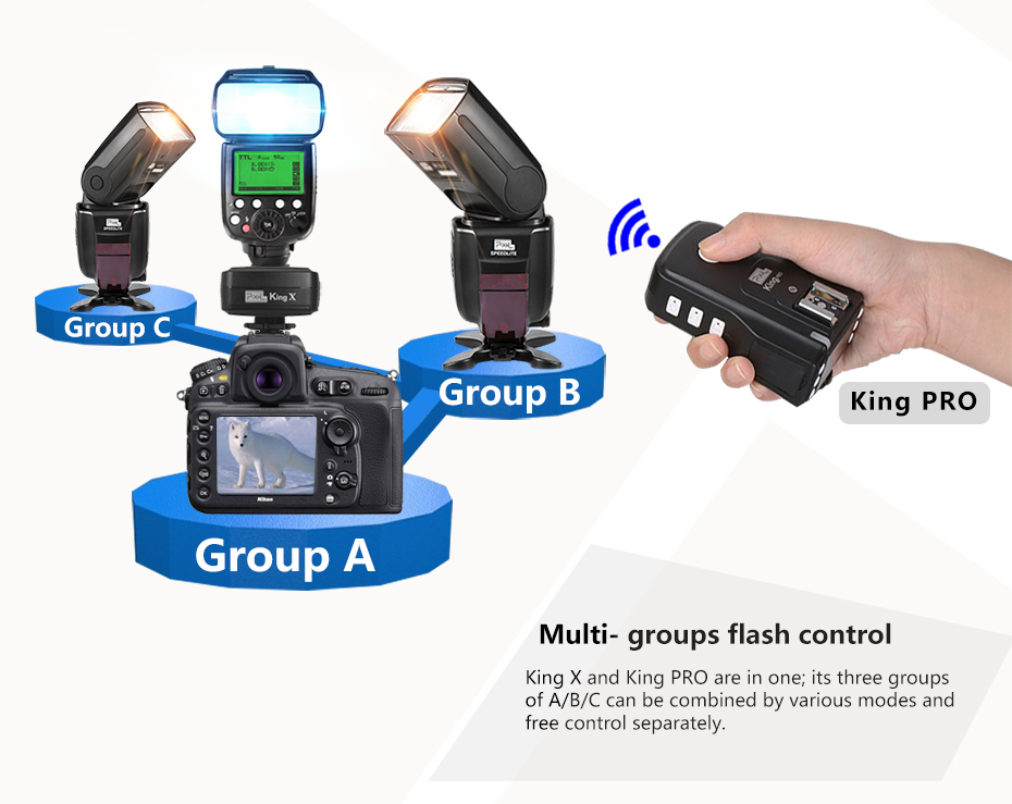 King X for Nikon is a universal Receiver for a series of Pixel wireless TTL trigger products. Users buy a Nikon King X can be used as a Nikon Receiver for King pro. The product can be bought singly whose performance is the same as the Receiver of King pro.