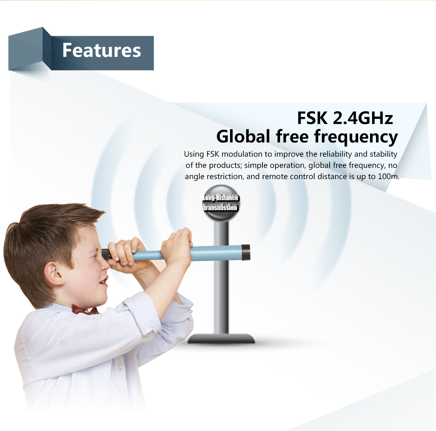 4:Using FSK 2.4 GHz wireless controls system which more reliability and stability.