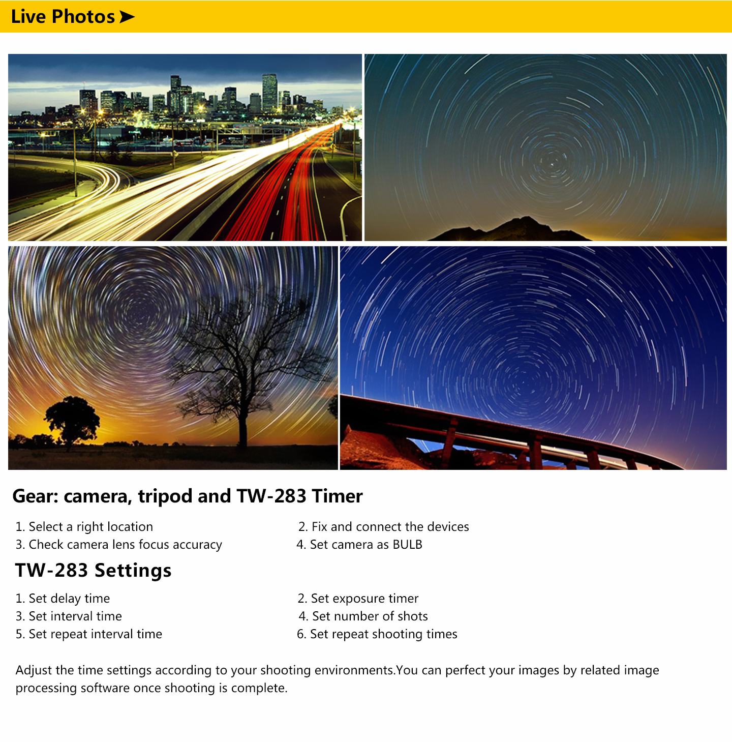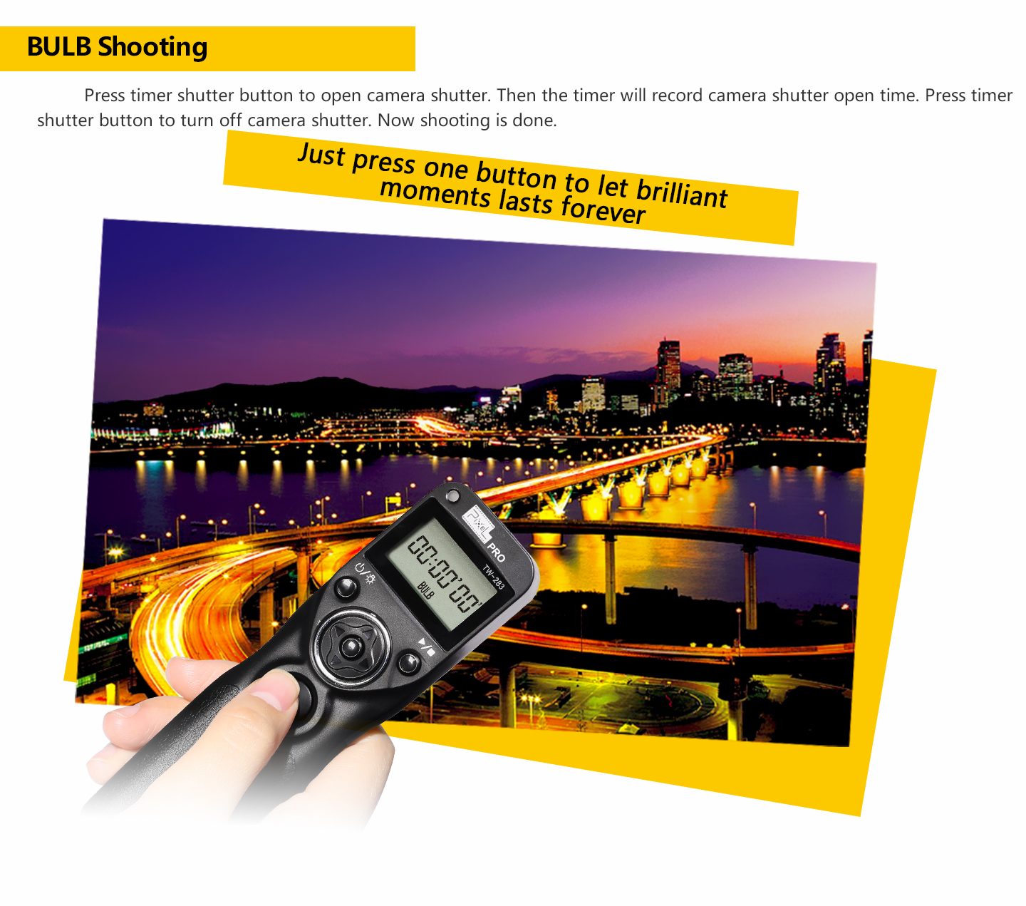 supports simple single shooting, 1S continuous shooting, [ BULB ] shooting, delay shooting and timer schedule shooting.
