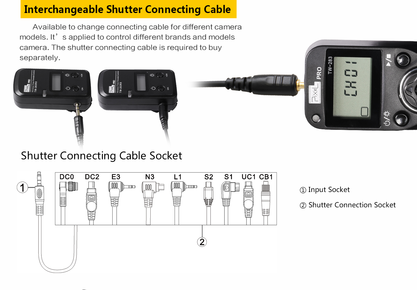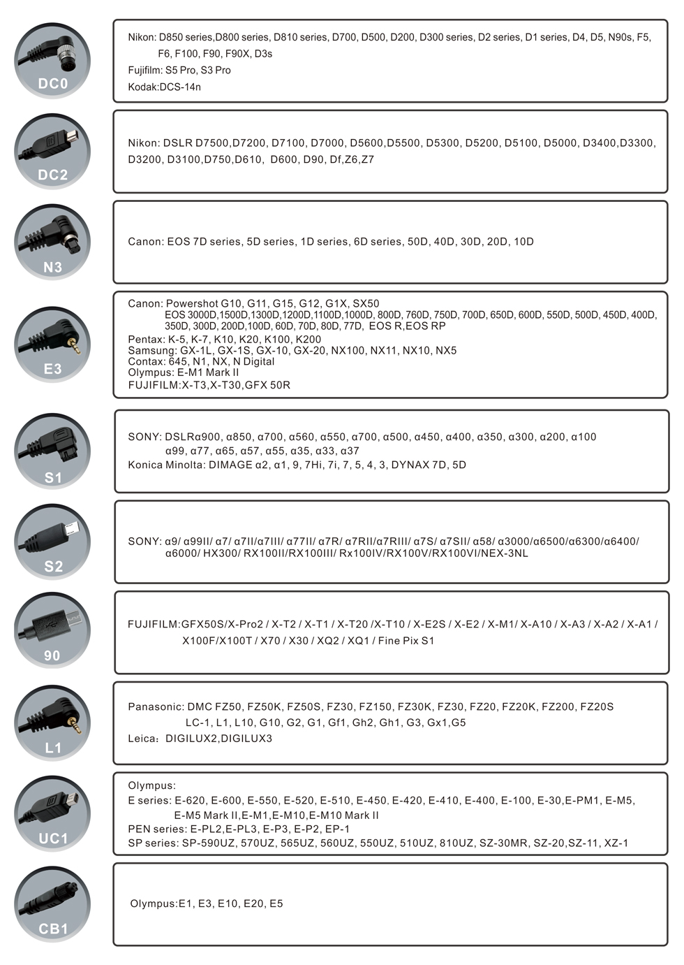 4. Available to control different brand’s cameras and models by changing different camera connecting cable.