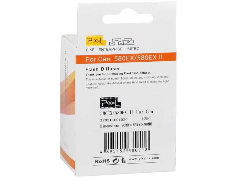 580EX/580EXII is for 580EX/580EXII flash. The material is soft and flexible which can match well with flash. It has an accurate color temperature. When it is thin, it looks transparent; thick, the molecule is lattice which makes the flash light scattering and looks translucent. Its temperature resistance is up to 130 degree. With good flexibility and cracking resistance, it has a stable chemical property. The material: polyethylene. It is used in plastic wrap and some other non-toxic food package.