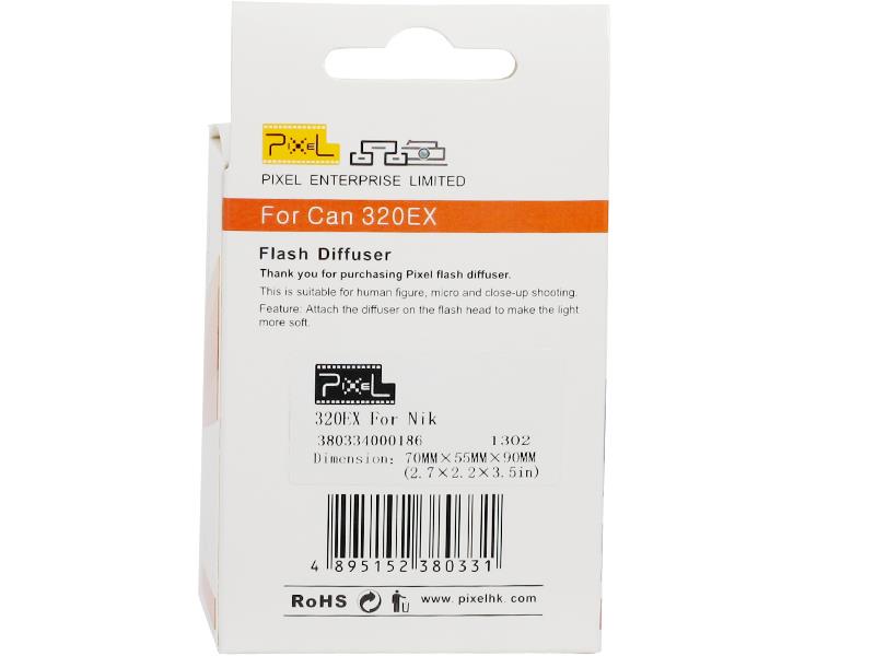 320EX is for Canon. Product description: the material is soft and flexible which can match well with flash. It has an accurate color temperature. When it is thin, it looks transparent; thick, the molecule is lattice which makes the flash light scattering and looks translucent. Its temperature resistance is up to 130 degree. With good flexibility and cracking resistance, it has a stable chemical property. The material: polyethylene. It is used in plastic wrap and some other non-toxic food package.