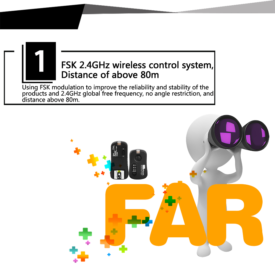 3. FSK modulation used to improve the reliability and stability of the product, use the free worldwide 2.4GHz frequency.
