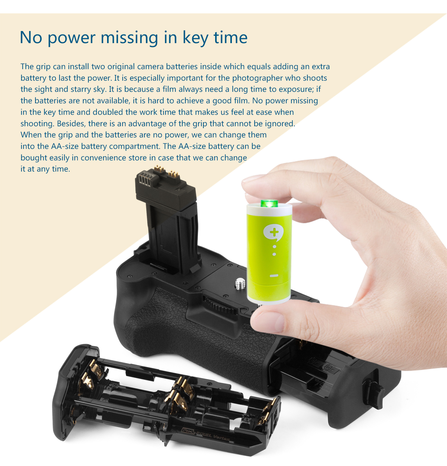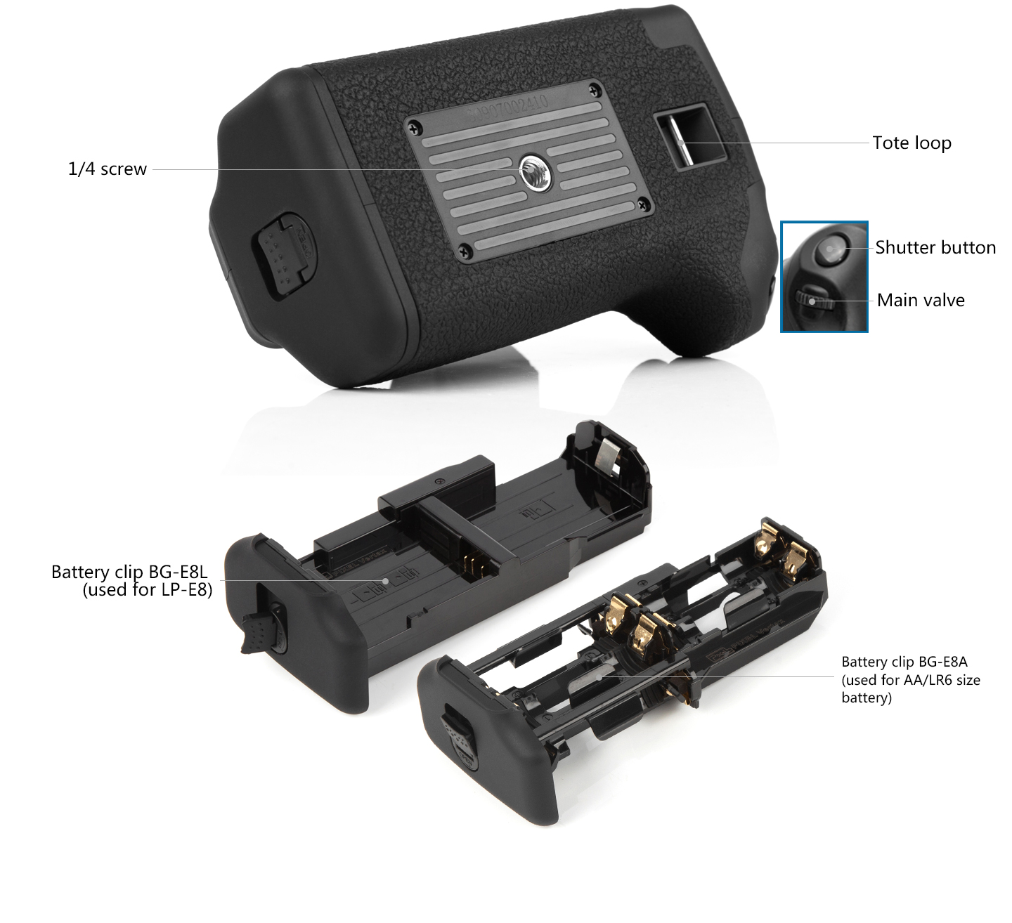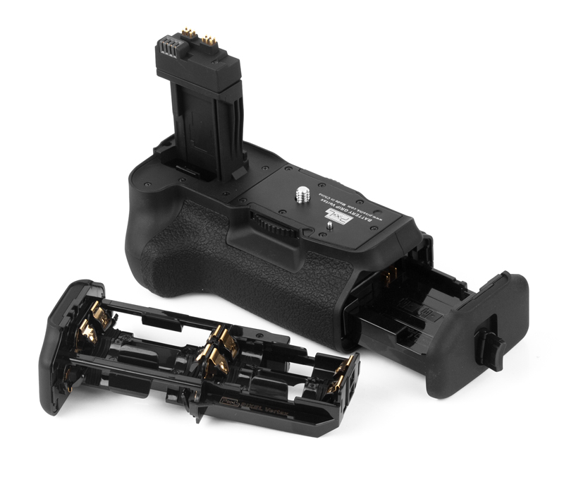 Power Source: (1) one or two LP-E8 battery (2) six AA/LR6 alkaline batteries