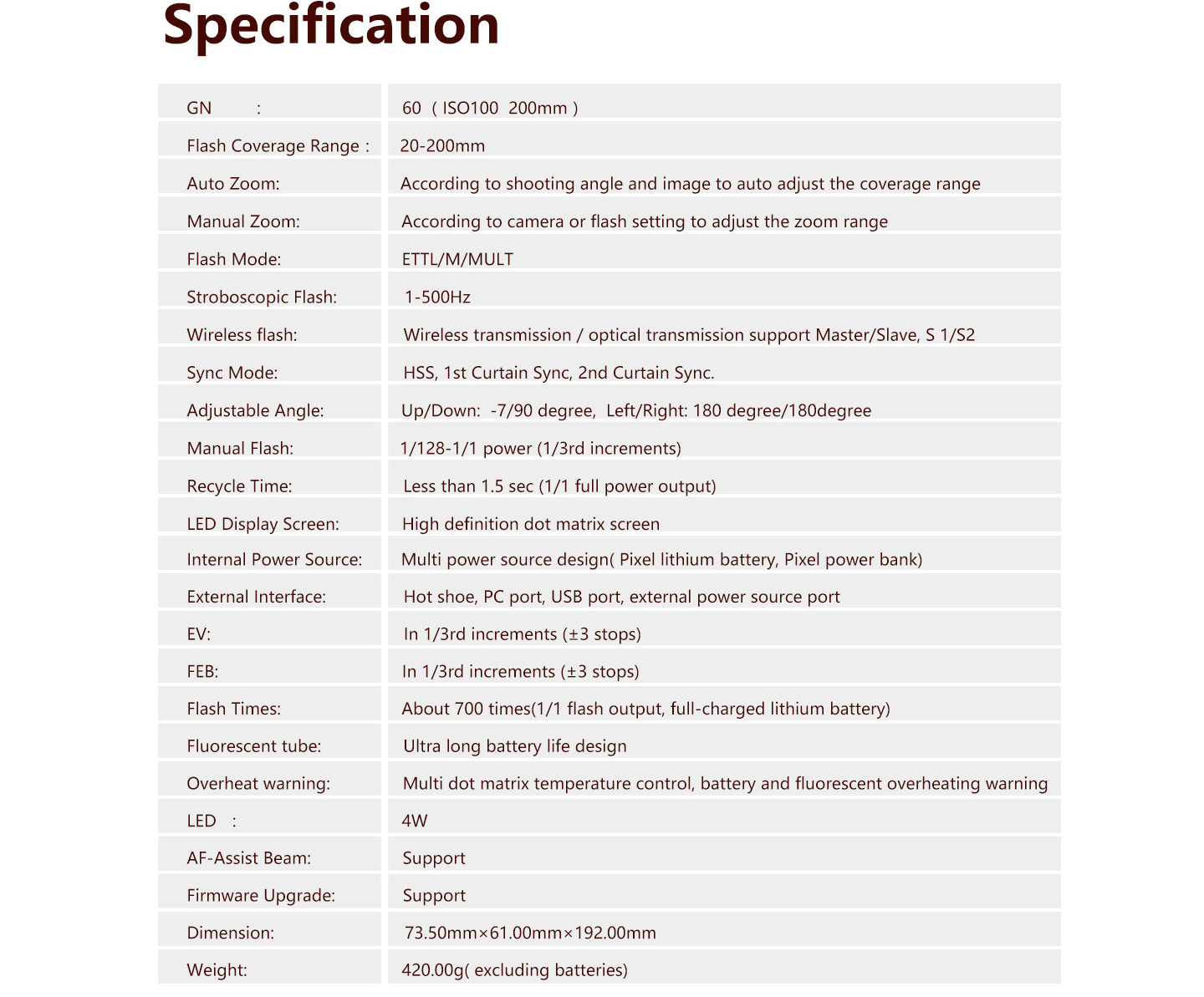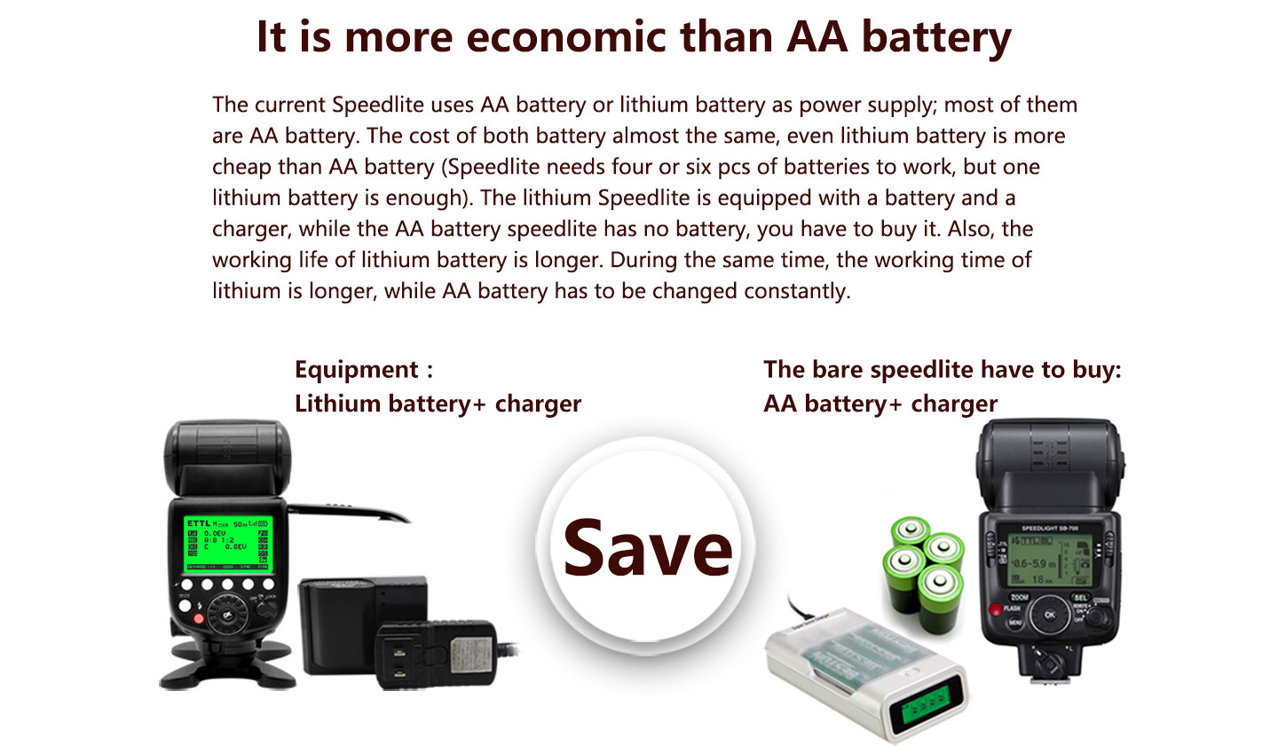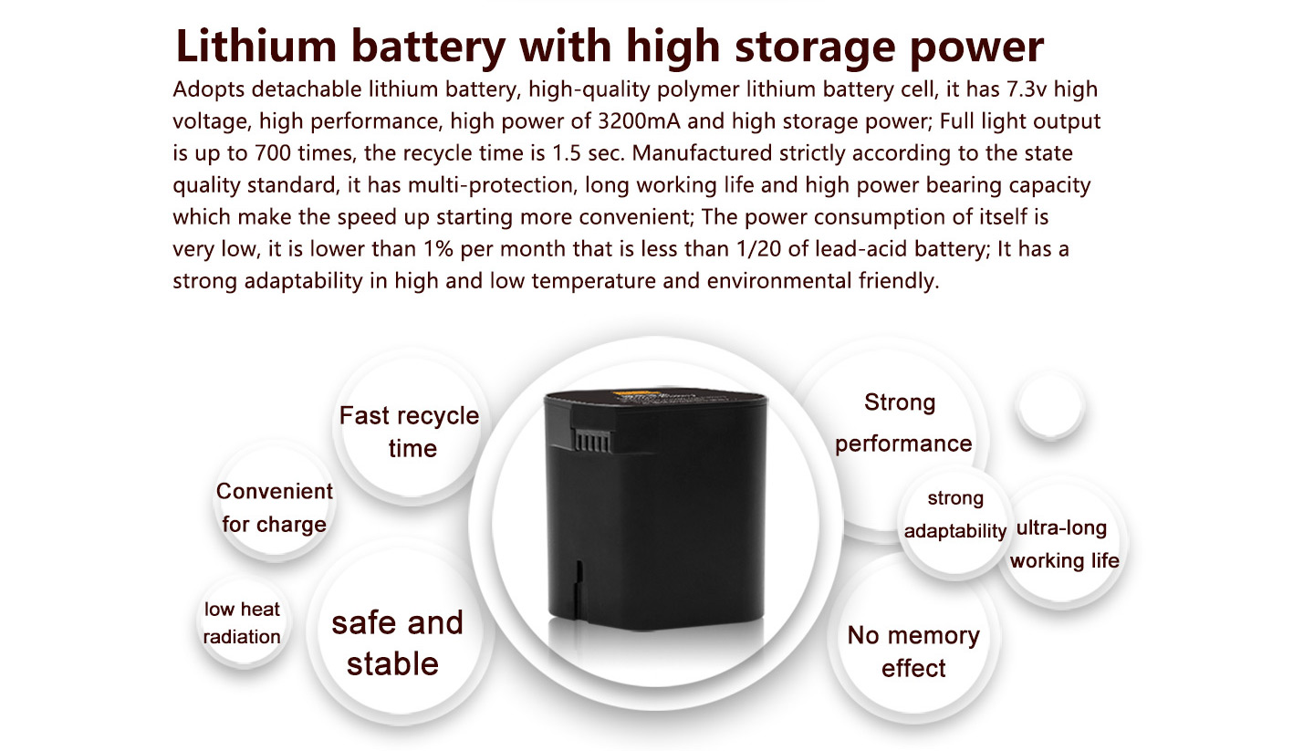 Flash Times: About 700 times(1/1 flash output, full-charged lithium battery)