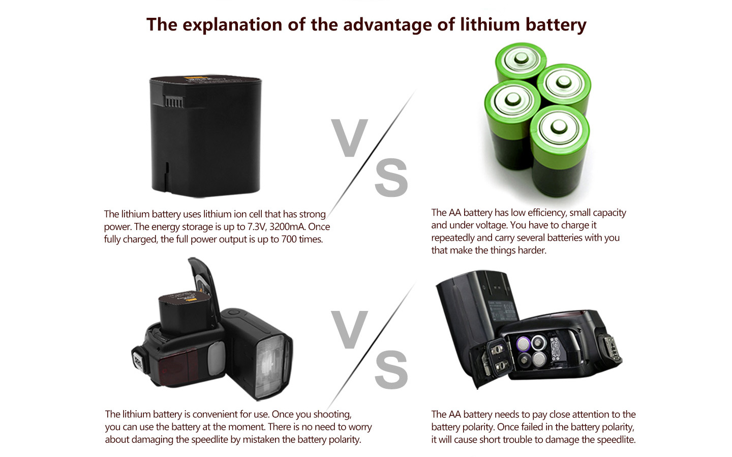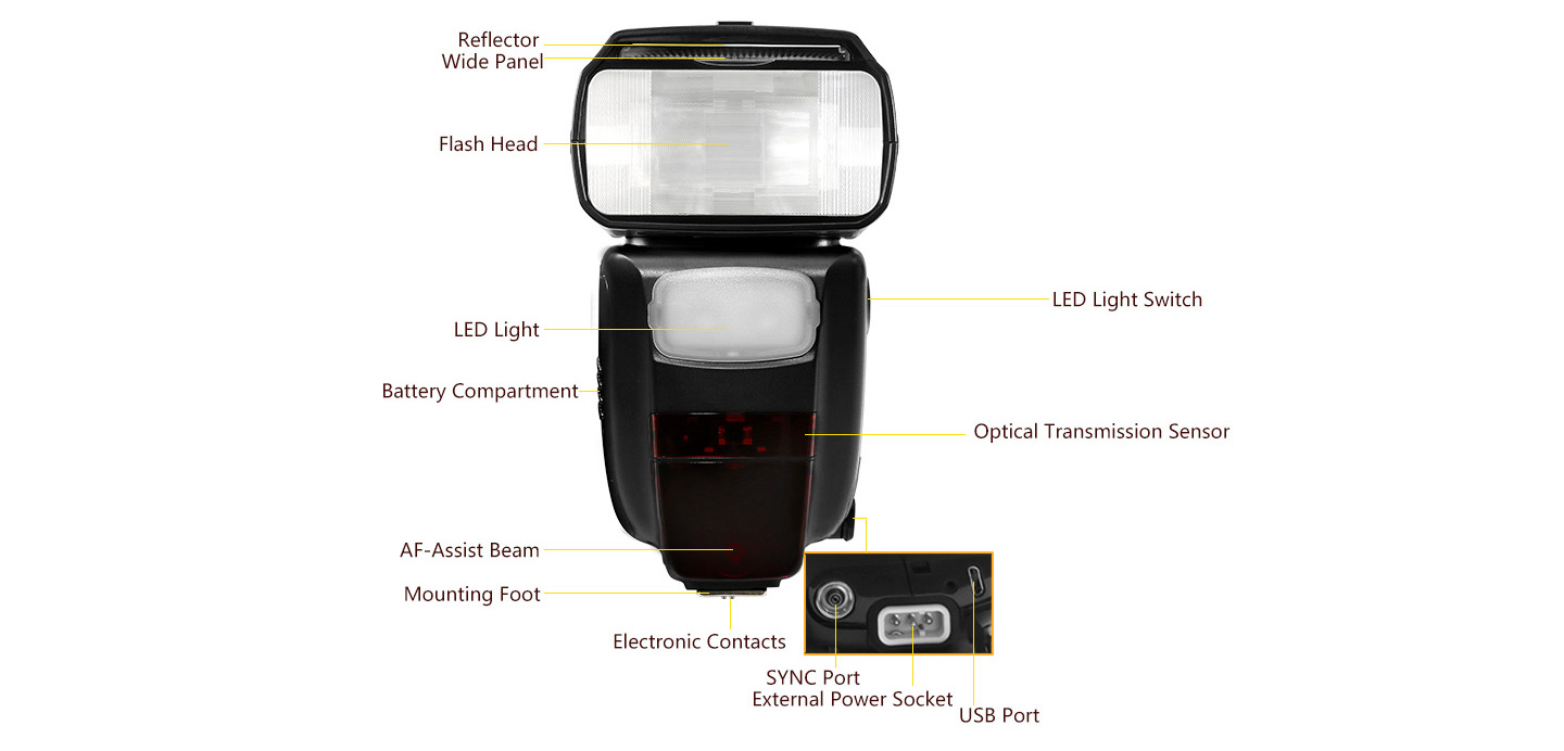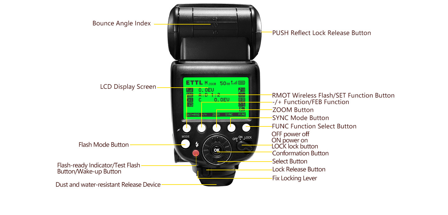Flash Times: About 700 times(1/1 flash output, full-charged lithium battery)