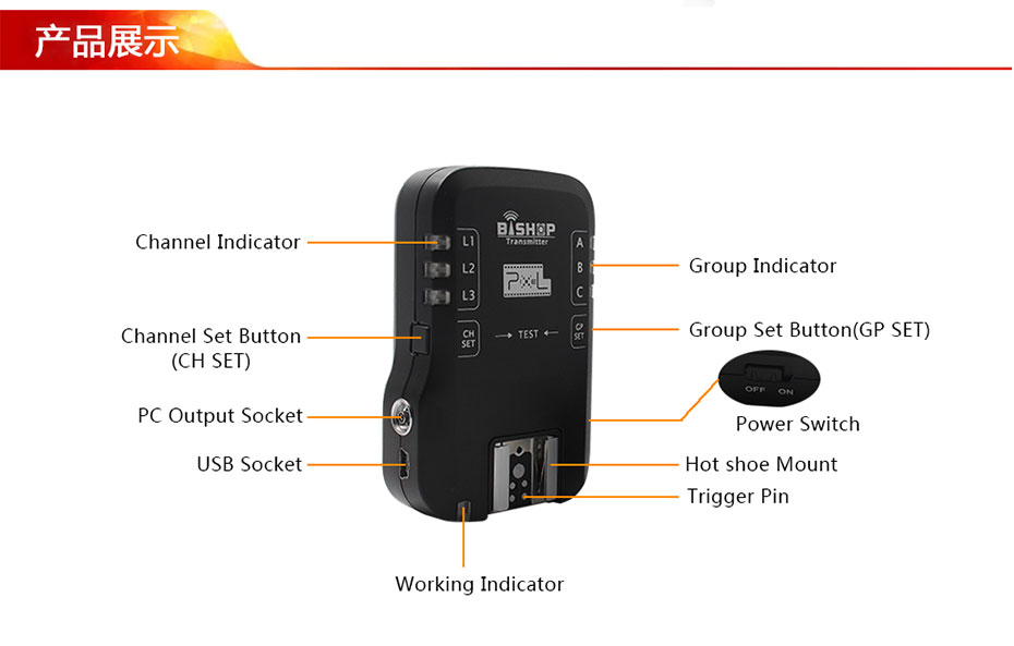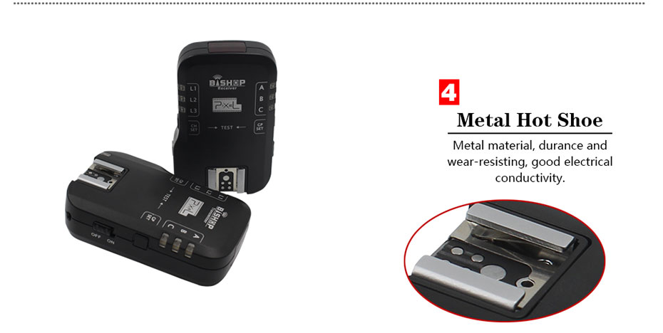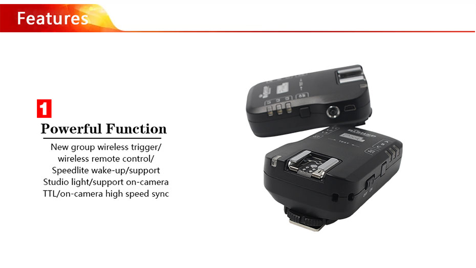 2. Transmitter hot shoe support TTL and sync with off shoe flash.