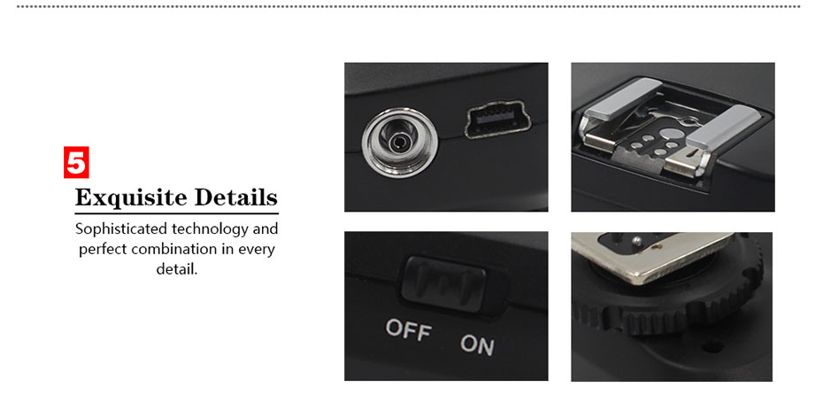 4. Through 3.5 socket to control studio light, shutter sync speed up to 1/250S.