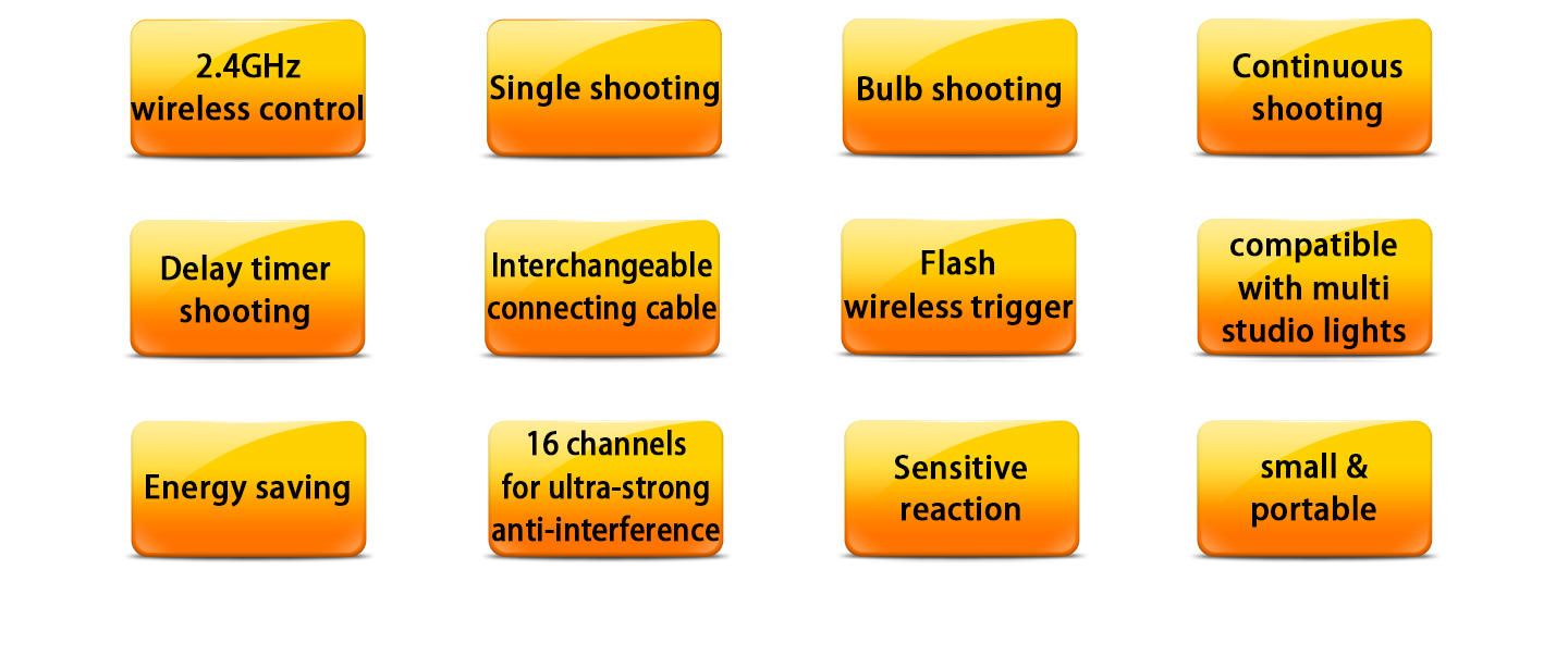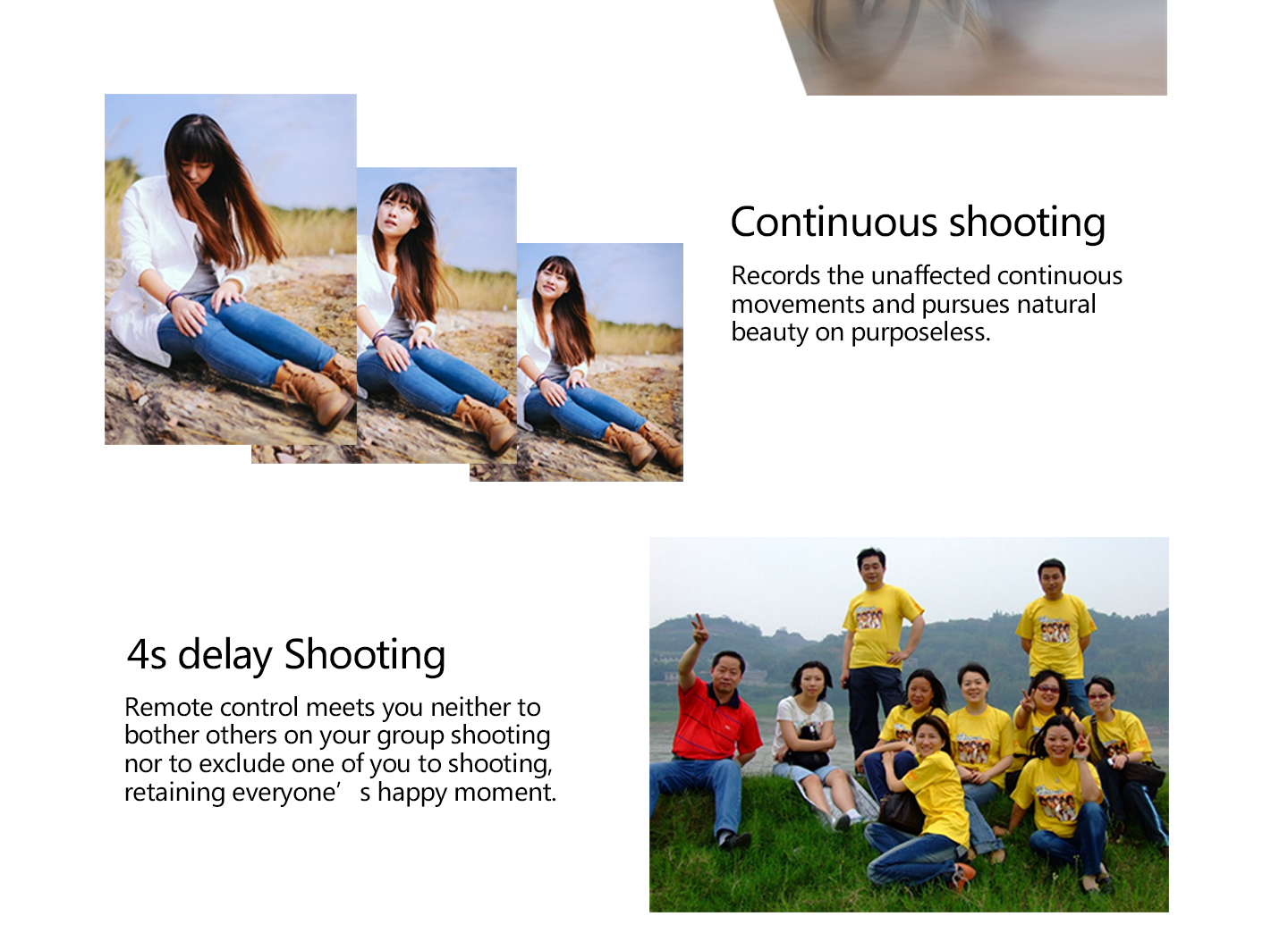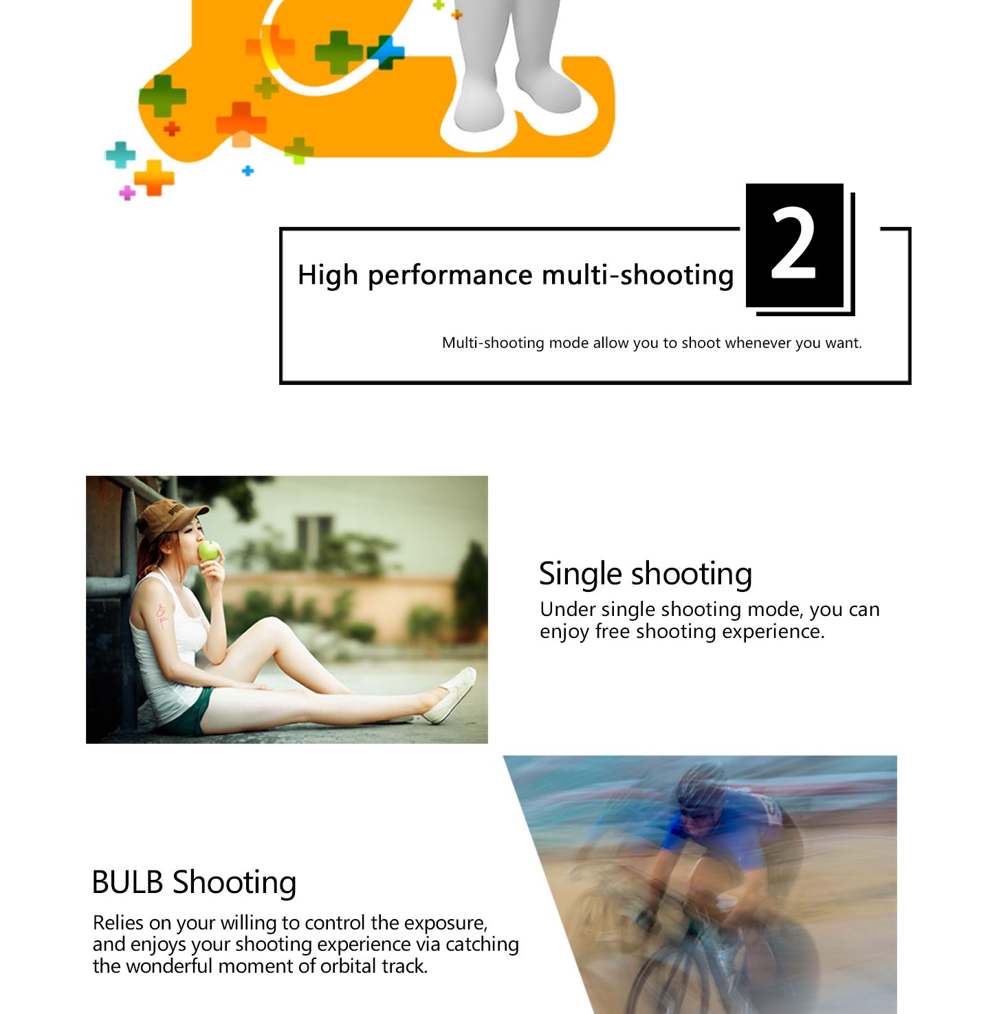 4. Supports single shooting,Bulb shooting, continuous shooting,and delaying shooting for camera.