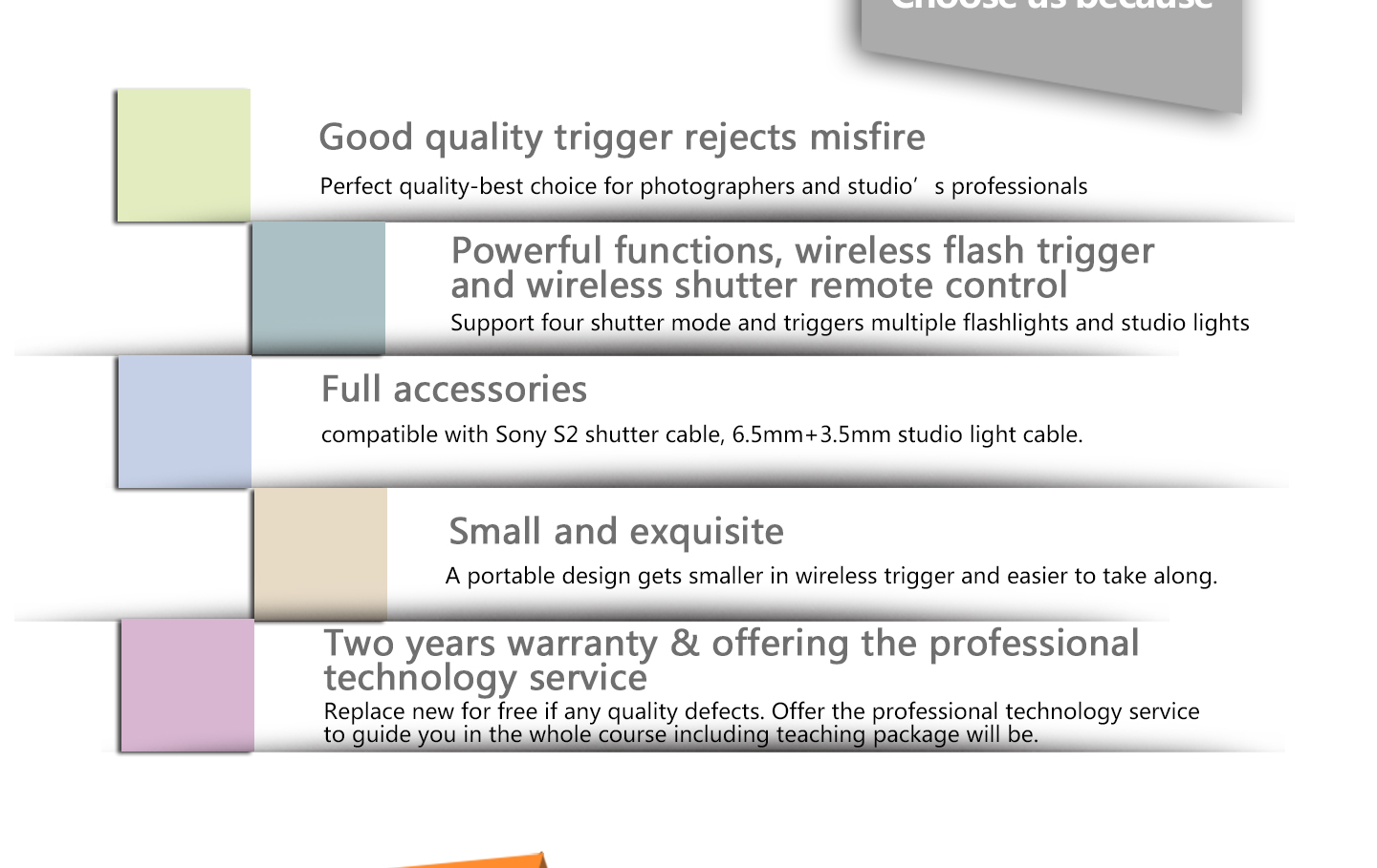 10.The hightest Shutter sync speed up to 1/250S. (some camera may be 1/250s or below).