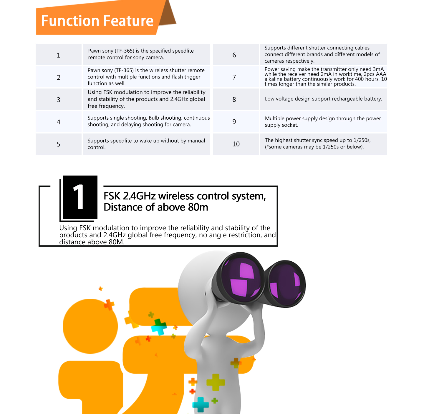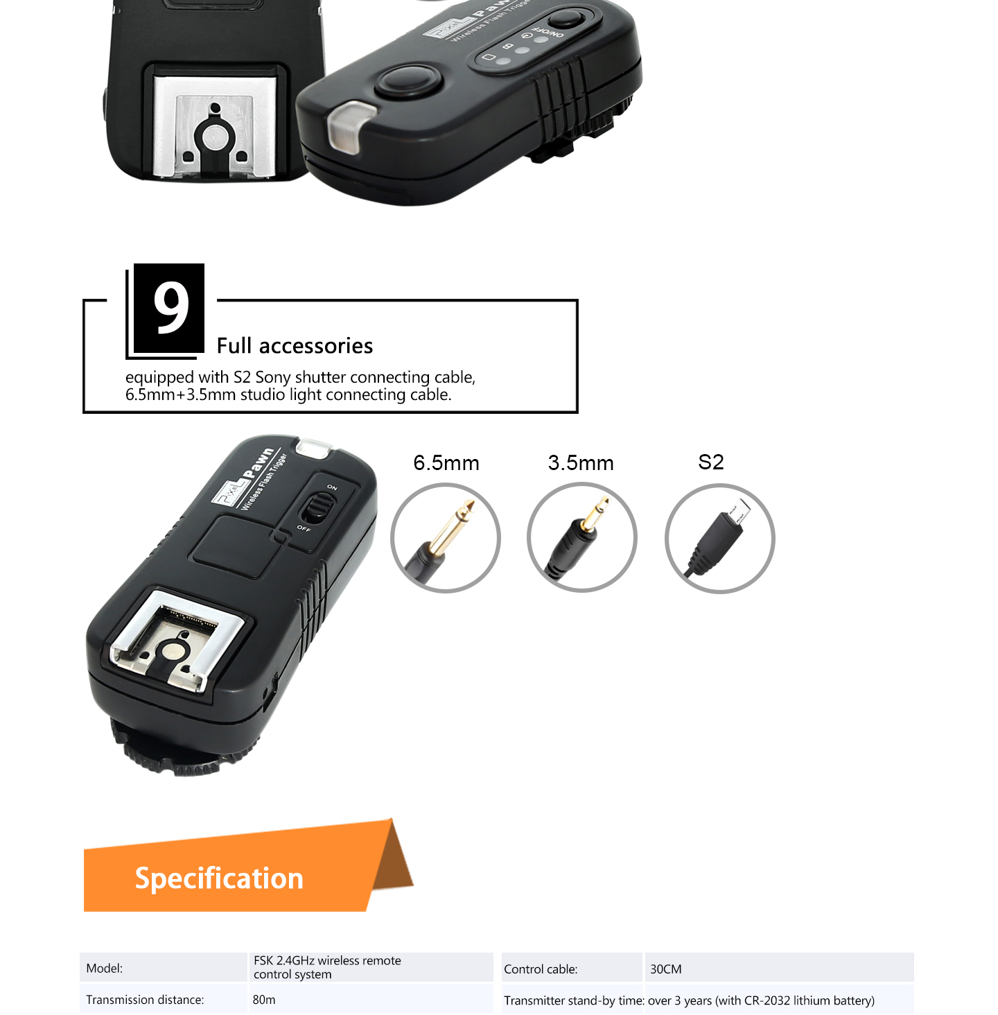 1. Pawn Sony(TF-365)is the specified speedlite remote control for Sony camera.