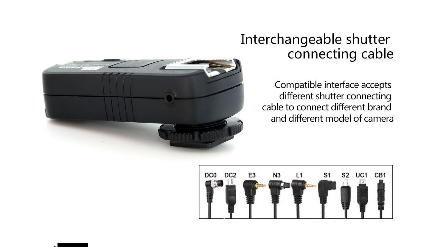 6. Supports different shutter connecting cables connect different brands and different models of cameras respectively.