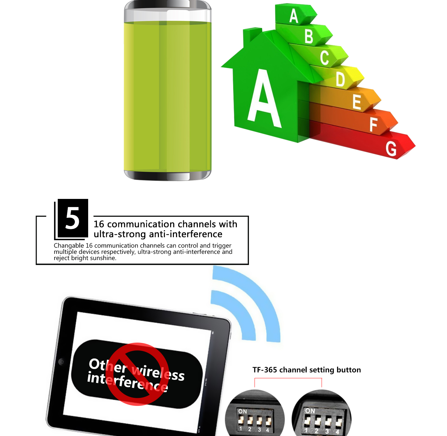 7. Power saving make the transmitter only need 3mA while the receiver need 2mA in worktime,2pcs AAA alkaline battery