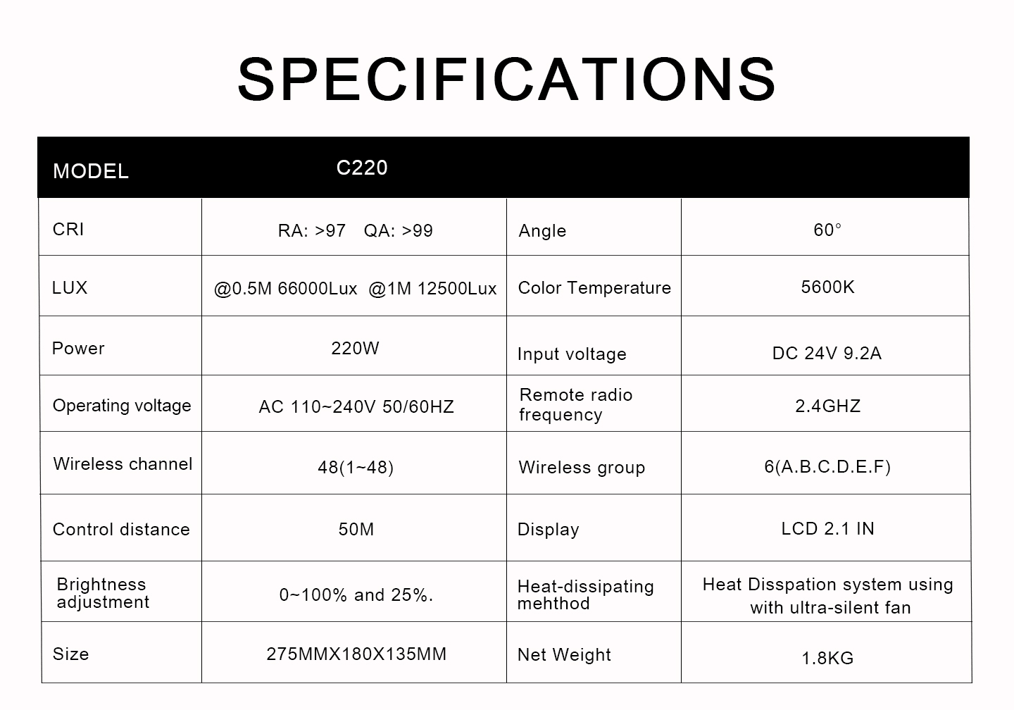 Product Model:C220