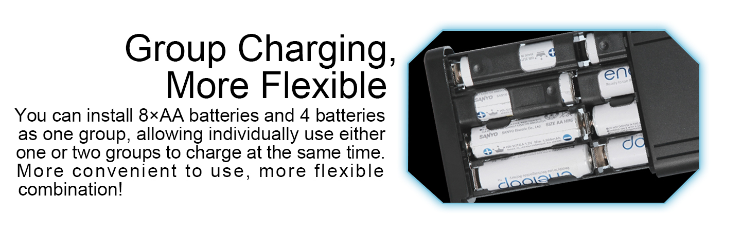 3.Flexible and convenience to use choose charging with one or two group freely.