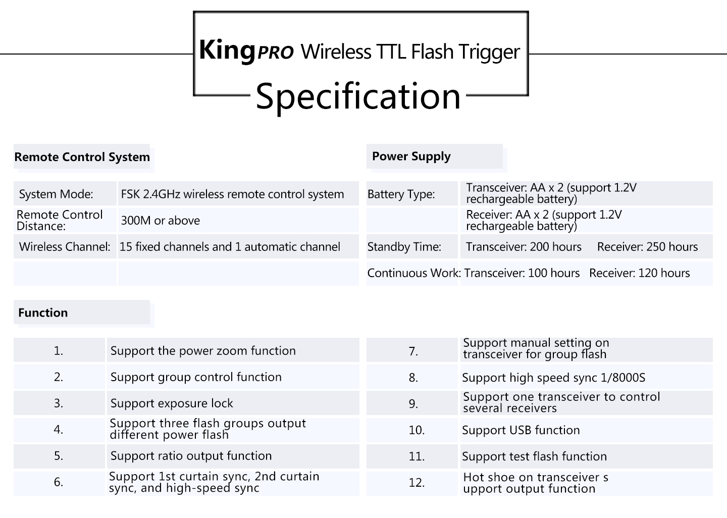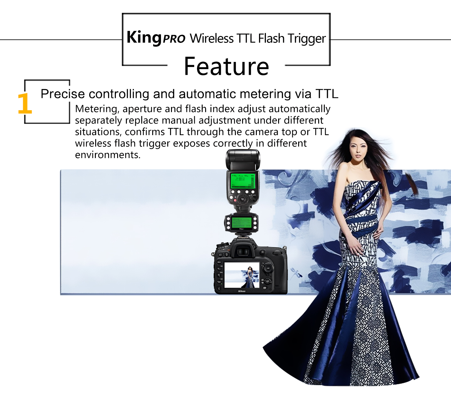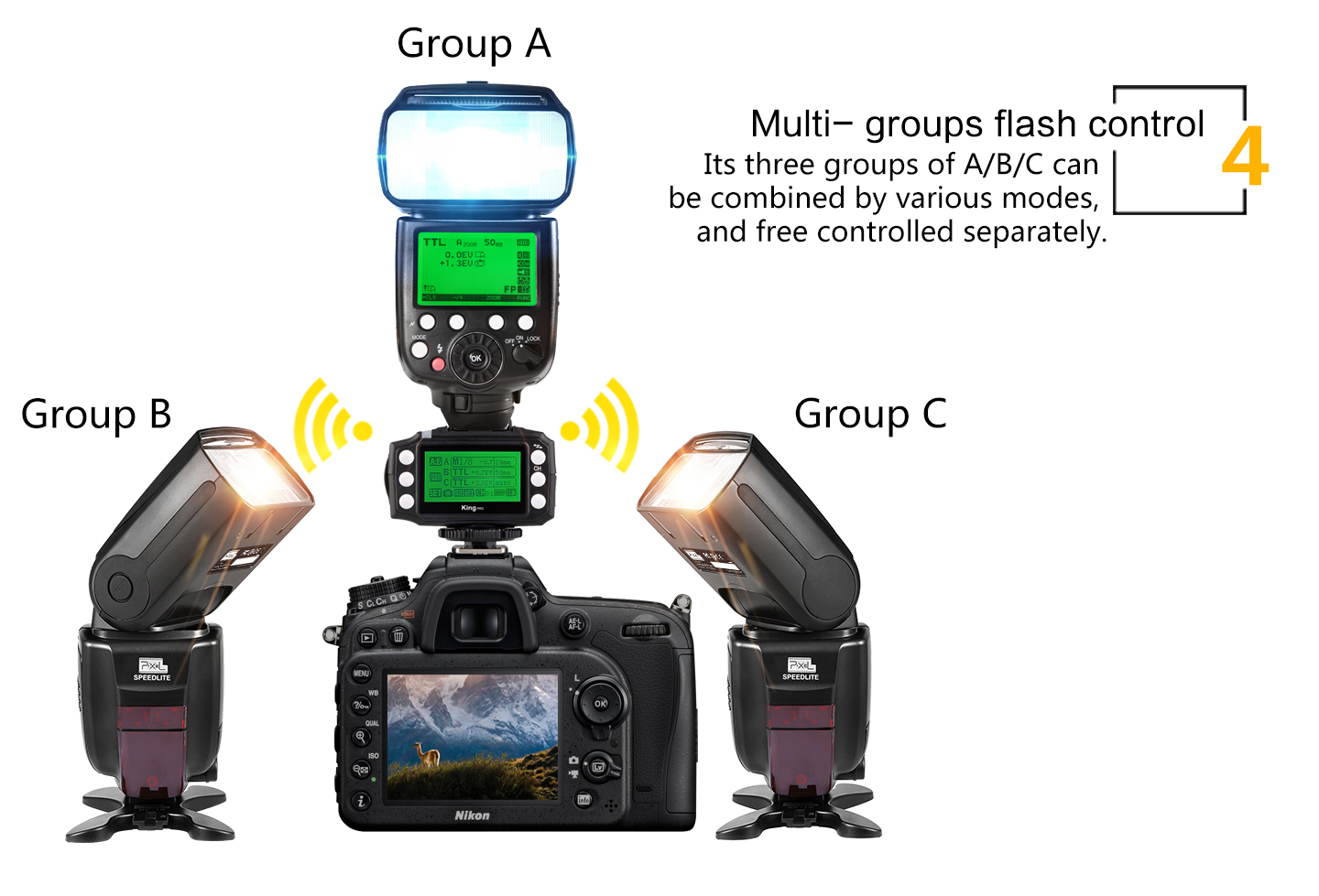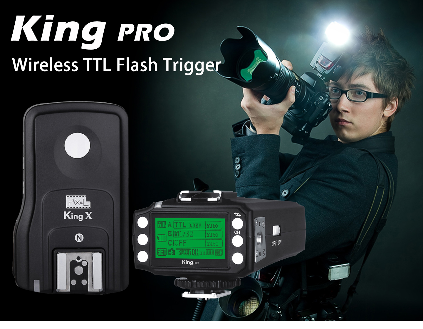 Pixel 3rd Generation Wireless TTL Flash Trigger King Pro for Nikon is suitable for Nikon cameras. Using digital FSK 2.4GHz wireless remote control. Compared to the previous two generations, the effective remote control distance improved significantly to 300M or above. Also, we have made a very big change in the functional operation.
