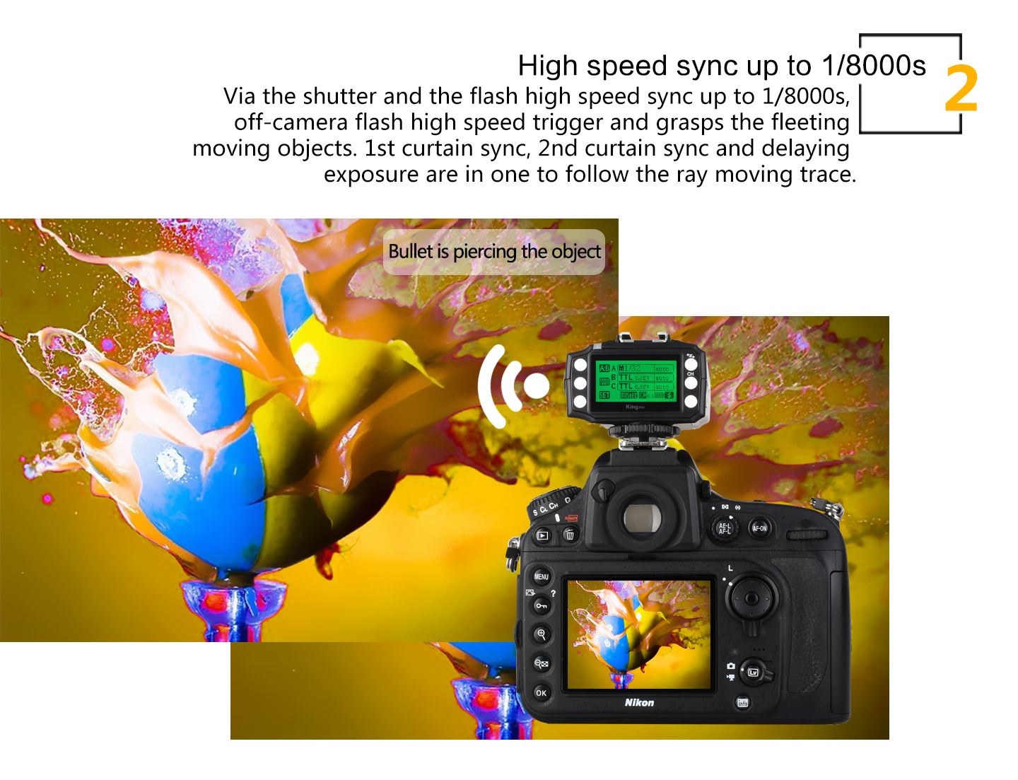 6.Support front-curtain sync, rear-curtain sync, high-speed sync