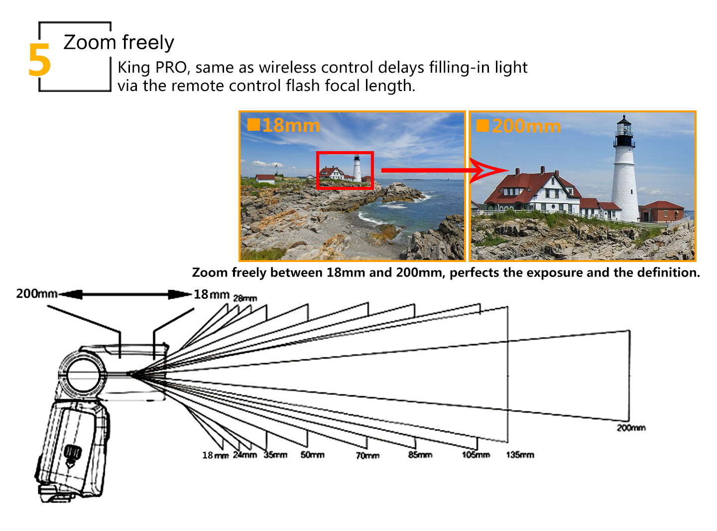 12.Support group to control the focal length of the flash.