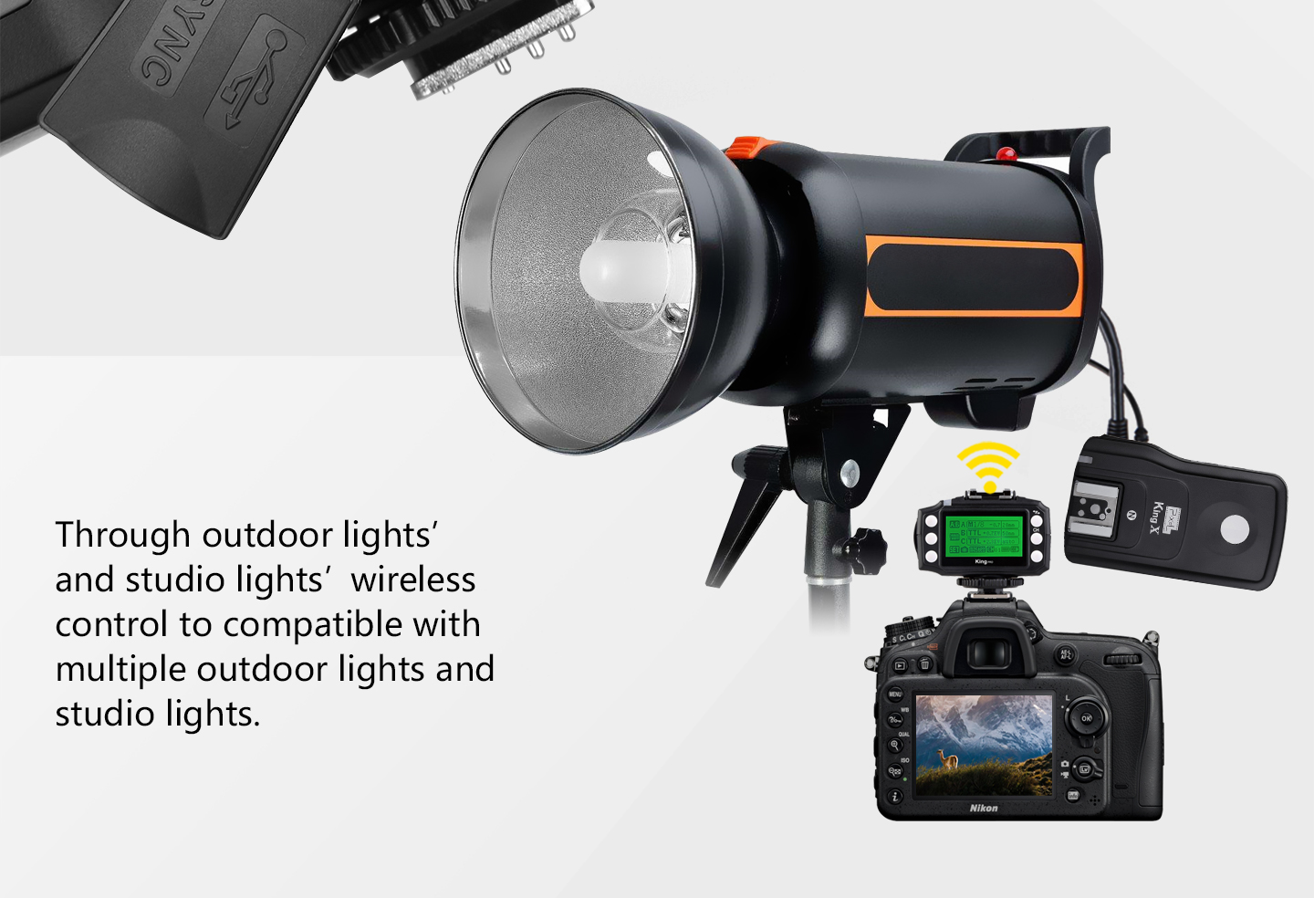 Compatible Flash: Airborne Flash, Studio Lights, Outdoor Lights