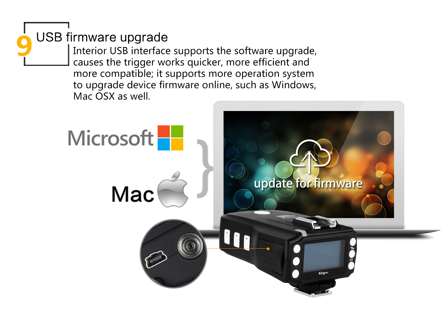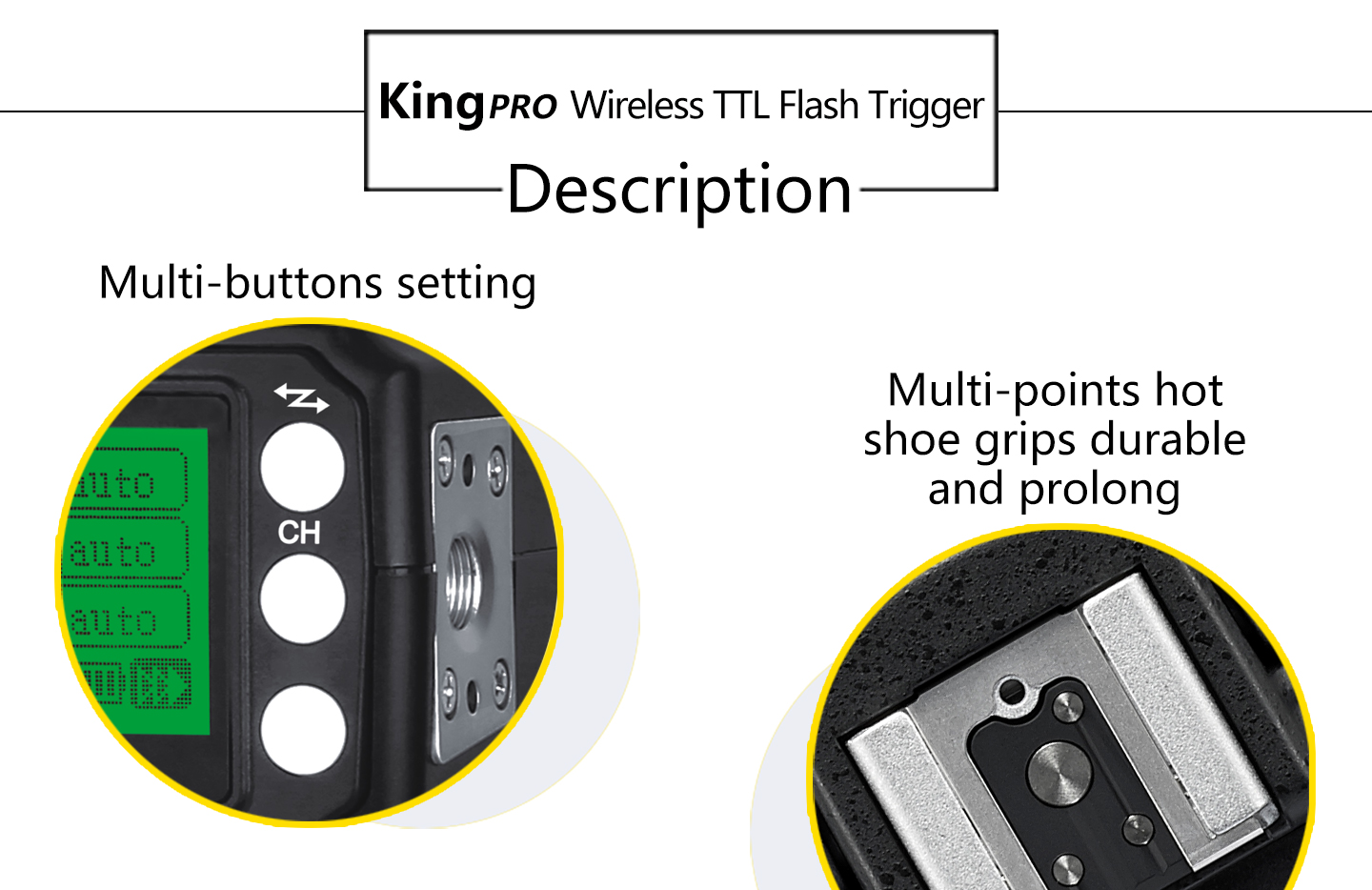 8.King Pro uses a full metal structure design, more solid, hard as stone chime; external metal mounting bracket nuts, same as the design of flash bracket.