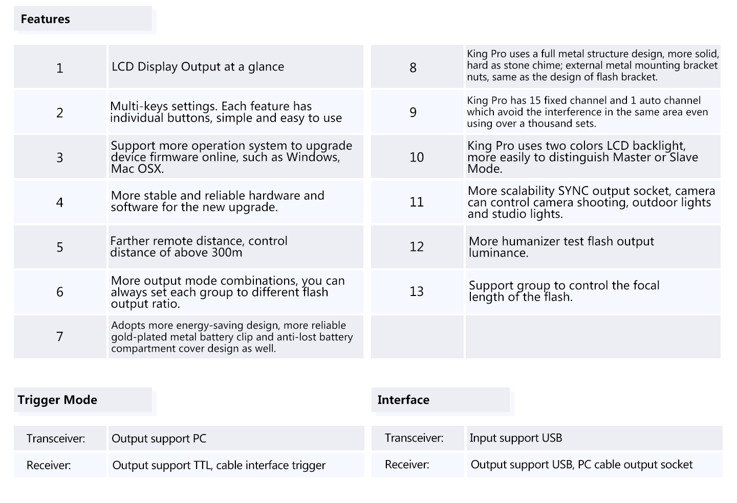 10.King Pro uses two colours LED backlight, more easy to distinguish Master or Slave Mode